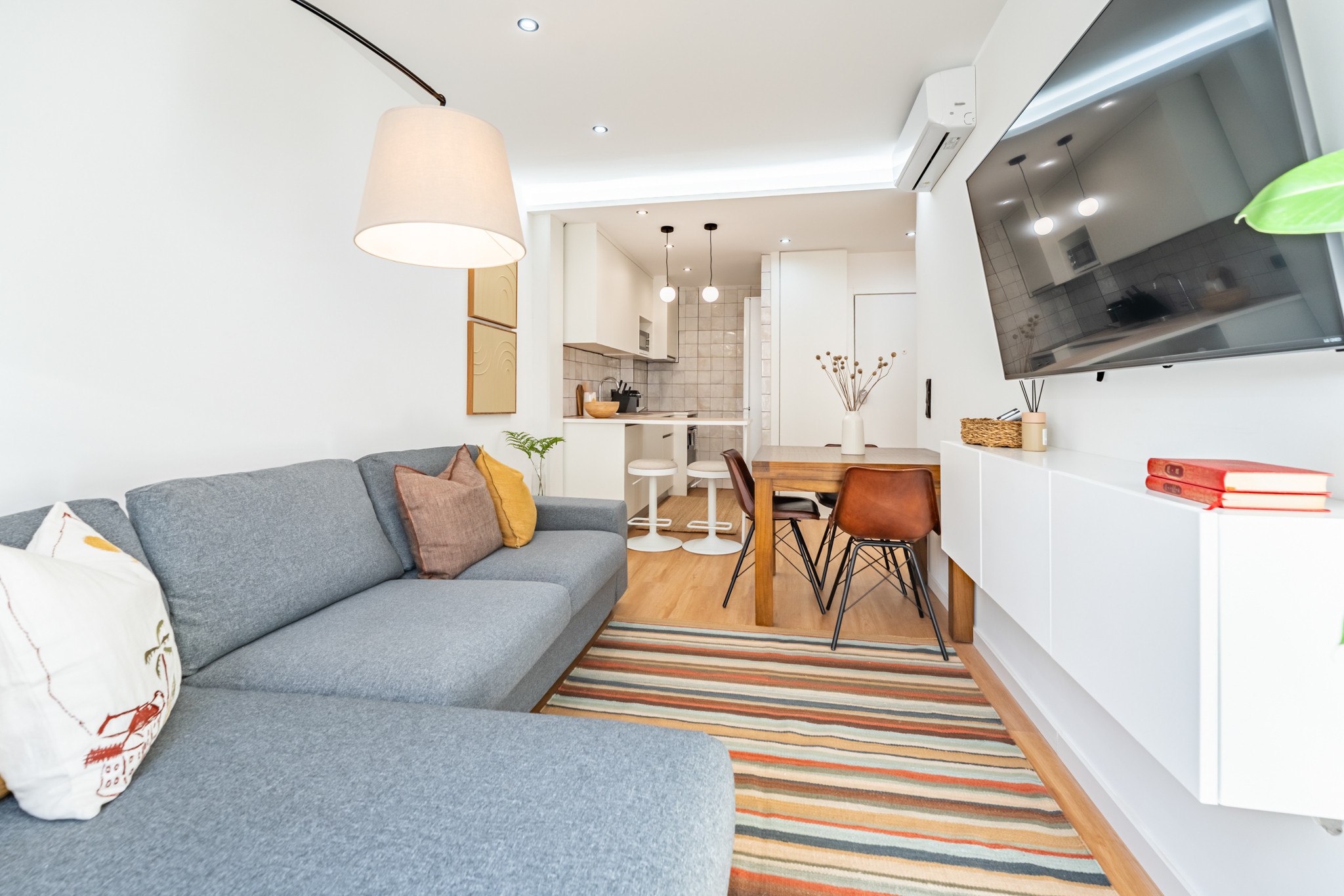 Não é apenas um lugar para ficar, é um espaço onde se regressa depois de um dia intenso, onde se descansa e onde se sente verdadeiramente em casa. Com tons suaves e ambiente contemporâneo, este apartamento convida a desacelerar. O grande sofá torna-se o centro de noites bem passadas, seja para ver um filme no ecrã plano de grandes dimensões, seja para conversar depois de um jantar num dos muitos restaurantes existentes nas redondezas.