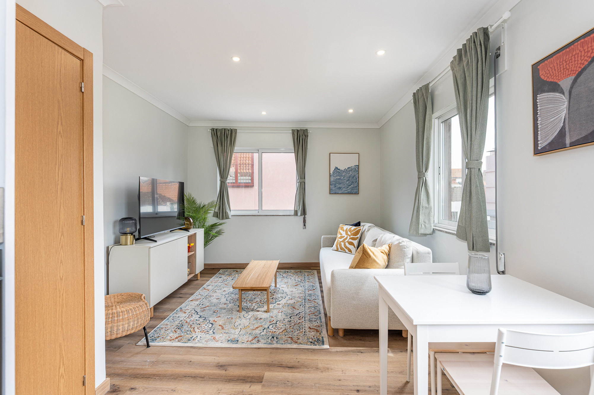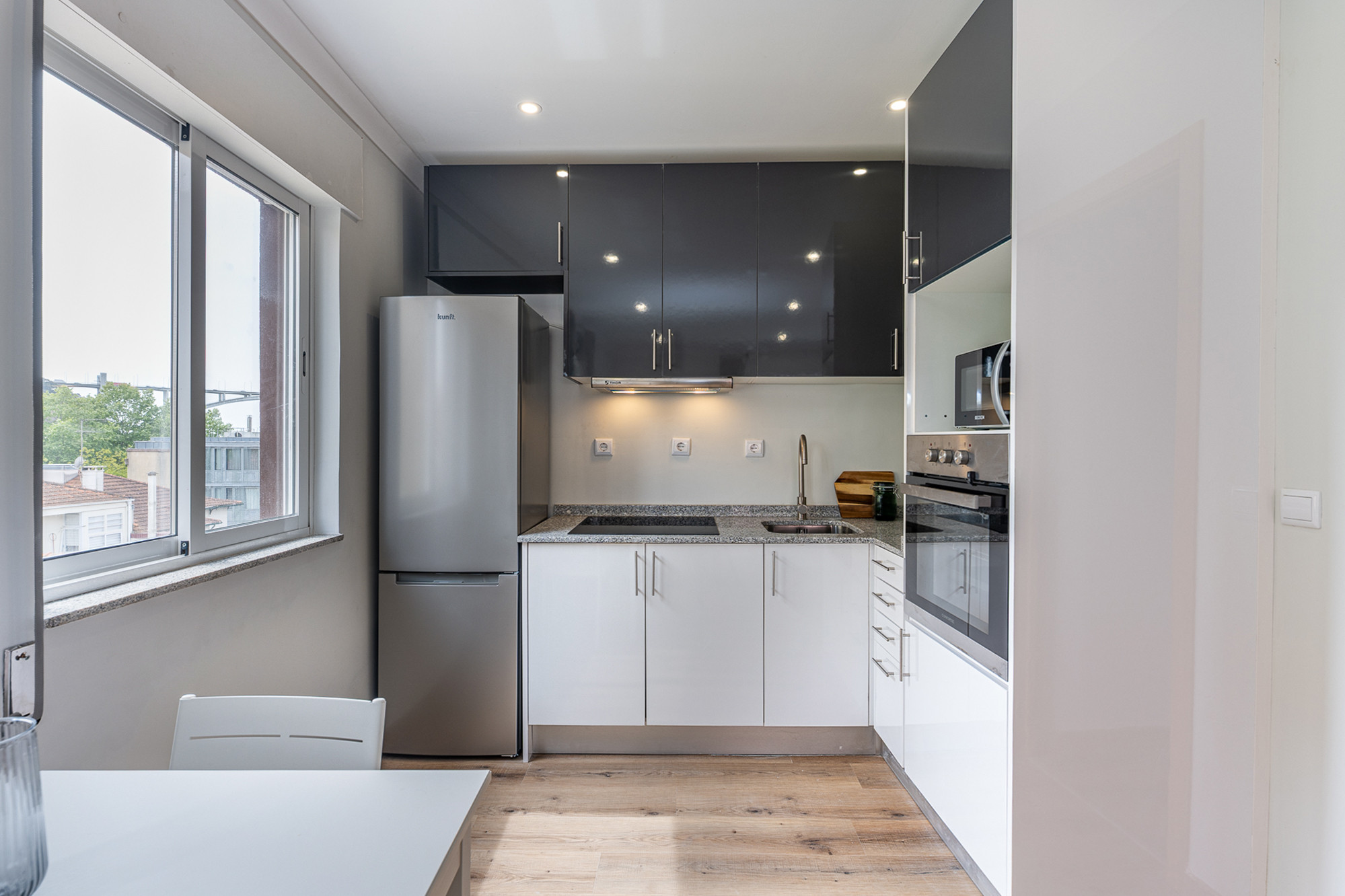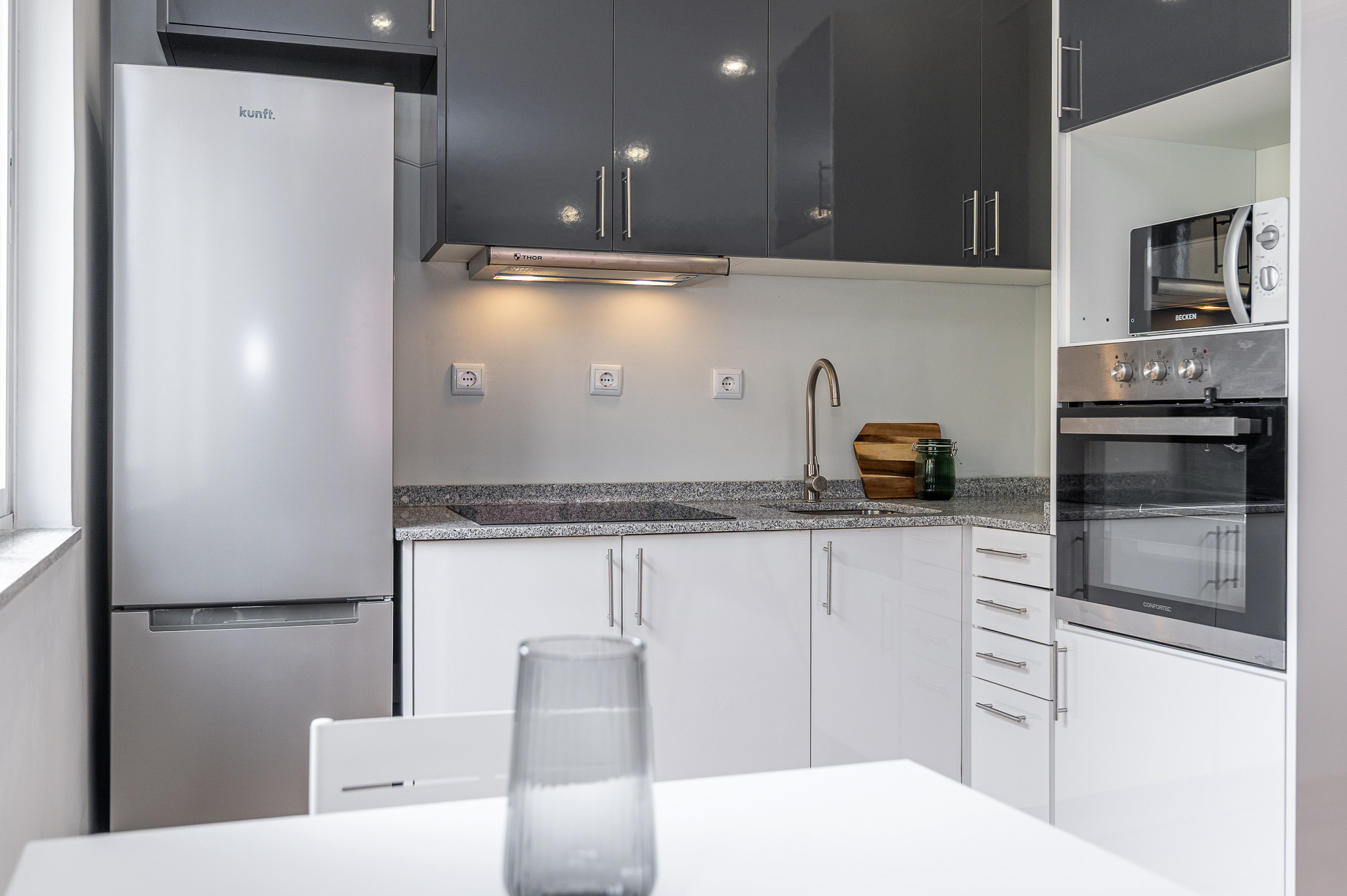 Totalmente equipado, inclui máquina de lavar e secar roupa, micro-ondas, frigorífico, forno, fogão e exaustor, bem como todo o mobiliário necessário para uma experiência prática e funcional desde o primeiro dia.